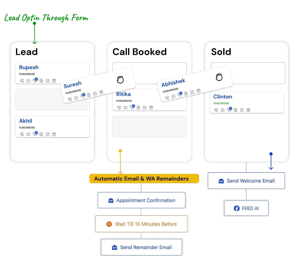 Drag and drop your sales workflow into a clear, visual pipeline. Track leads, manage deals, and spot bottlenecks with complete clarity. Refine your path to success, step by step.